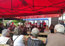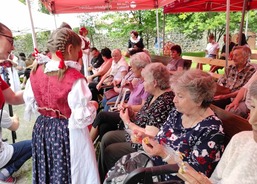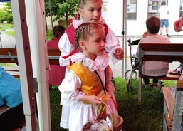 Po mši svaté se všichni přesunuli do Meditační zahrady za kostelem. Cestou měli možnost si prohlédnout fotografie z historie i současnosti místní charity. Pak se naši hosté usadili na lavičky pod přichystanými stany a ponořili se do tónů cimbálové muziky z místní ZUŠ, shlédli vystoupení folklórního souboru Prosének, nechali se přenést do orientu břišními tanečnicemi z uskupení El Zaffa a zaposlouchali se do písní z muzikálu Sněhurka v podání malé Dorotky.