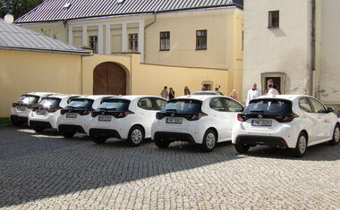 Šest nových osobních vozů Toyota Yaris s hybridním pohonem jsme získali díky finanční podpoře projektu Obnova vozového parku sociálních služeb Charity Hranice v rámci Výzvy Ministerstva pro místní rozvoj č. 101 Integrovaného regionálního operačního programu (IROP) Sociální infrastruktura se zvýšenou energetickou účinností.